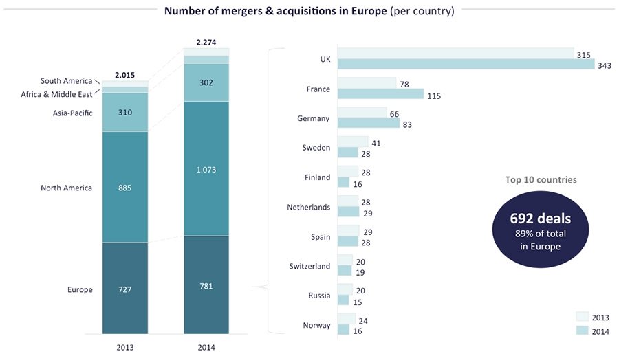 - Key Statistics Europe is one of the most considerable shares of global m&a activity, with nearly 50% of it happening in the UK.